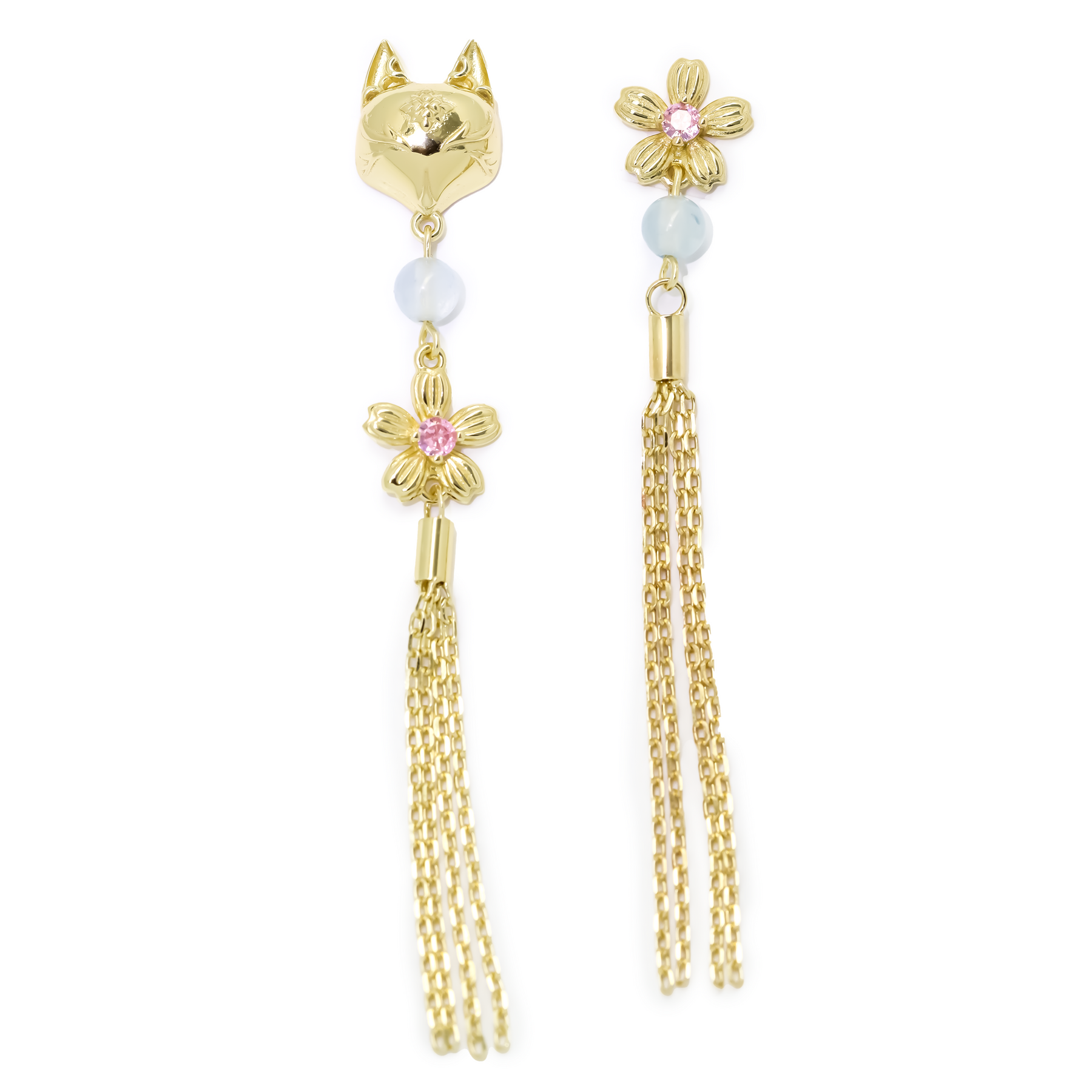 This piece is made of 0.925 sterling silver plated in 14KT gold, featuring synthetic stones.